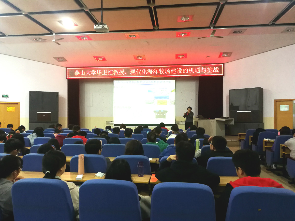 报告会上,毕卫红教授围绕海洋牧场建设背景与技术要求、海洋牧场生物监测技术与装备、海洋牧场环境监测技术与装备三个方面对现代化海洋牧场建设进行了全面的分析与总结。同时,毕卫红教授向在场的老师和同学们介绍了该课题组在海洋牧场建设方面做出的重要工作,并结合学生的专业特点进行了较为深入的分析,在使学生扩大视野的同时,更加激发了学生对本专业的热爱。