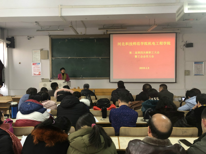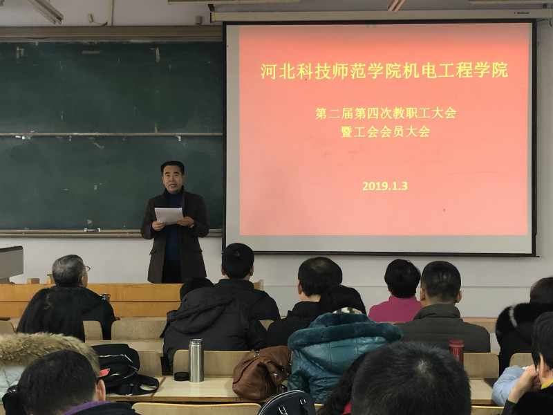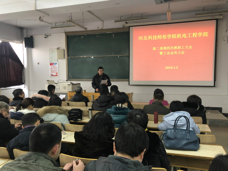2019年1月3日,WilliamHill官方网站在昌黎校区主楼C208教室,召开了第二届第四次教职工大会暨工会会员大会。大会由分工会副主席邓春岩主持。机电学院全体教职工及工会会员参加了大会。