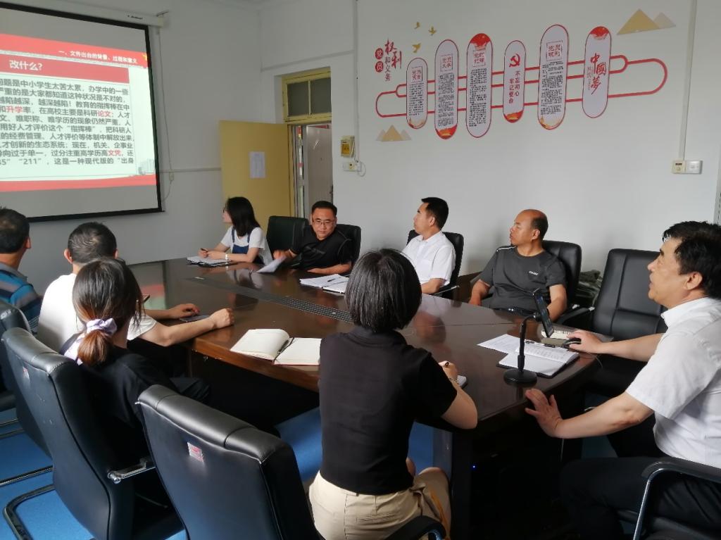 会上,王院长带领全体人员深入学习了2020年10月13日中共中央、国务院印发的《深化新时代教育评价改革总体方案》(以下简称《总体方案》)。首先王院长就河北省教育厅工作部署会主要精神进行了传达,进而从文件出台的背景、过程和意义,《总体方案》的基本定位、考虑和特点,《总体方案》的主要内容和精神,文件的贯彻落实工作等方面深入剖析文件精神,引导大家准确把握《总体方案》精神。学校针对中央《总体方案》精神进行部署,开展全校大学习,本院认真贯彻落实中央及学校的方针政策,务必做到“专案研究,系统谋划,试点探索,立行立改”。