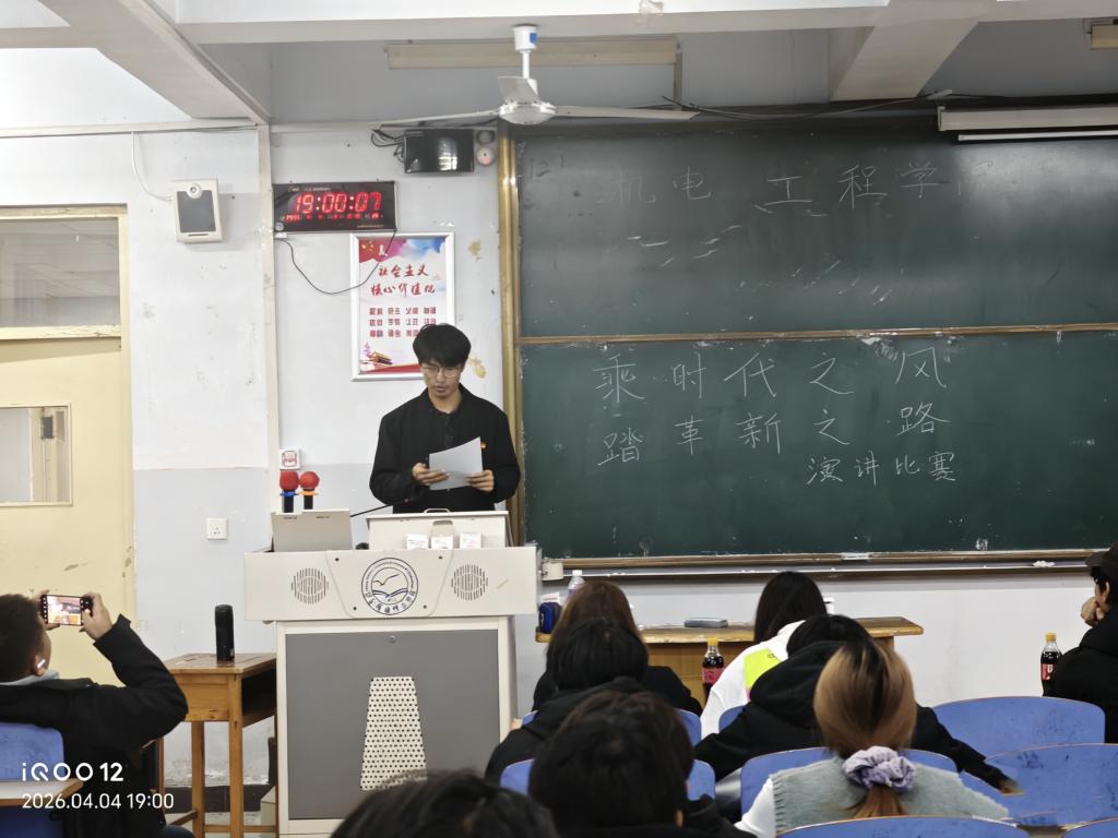 活动伊始,参赛选手有序签到入场,随后,主持人介绍了本次比赛的背景意义、竞赛规则、评委嘉宾及评分标准。比赛正式开始后,选手们紧扣“时代发展与创新变革”核心主题,结合自身学习生活经历与专业认知,畅谈青年理想、诠释责任担当,先后写出《以青春为笔,绘时代革新画卷》《乘风破万浪,创新向未来》《踏时代征程,做革新先锋》等一批主题鲜明、内涵深刻的优秀演讲作品,充分展现了机电青年学生的家国情怀与创新精神。现场氛围热烈庄重,选手们的精彩表现赢得台下阵阵掌声。
