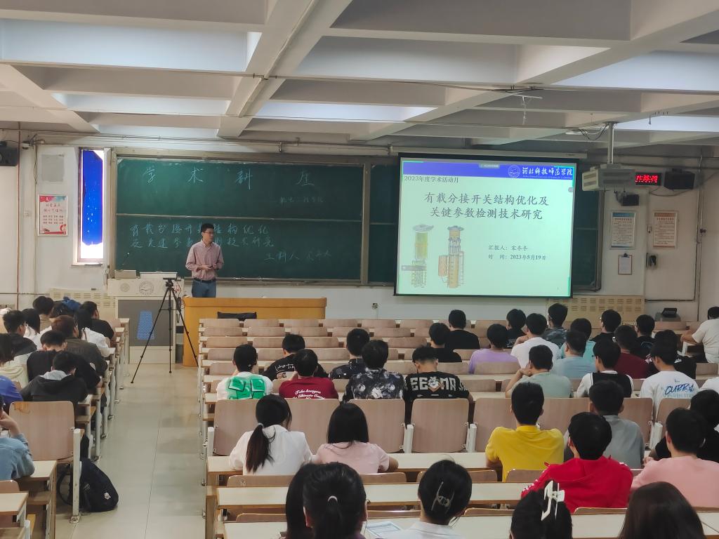 为了浓厚学院学术氛围,落实主题教育活动,2023年5月19日,我院宋冬冬博士以线上线下相结合的方式在昌黎校区为我院全体师生作了《有载分接开关结构优化及关键参数检测技术研究》学术讲座。
