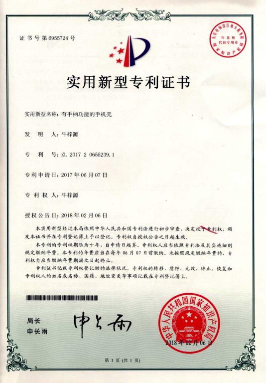 近日,从国家知识产权局获悉,WilliamHill官方网站2014级机械设计制造及其自动化专业牛梓源同学设计发明的《有手柄功能的手机壳》获批国家实用新型专利证书(专利号:ZL201720655239.1)。