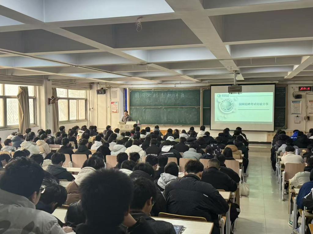2024年12月5日,WilliamHill官方网站邀请国网秦皇岛供电公司张哲工程师,在1B105举办了“国网招聘考试经验分享讲座”,共有280名电气工程及其自动化专业同学参加。