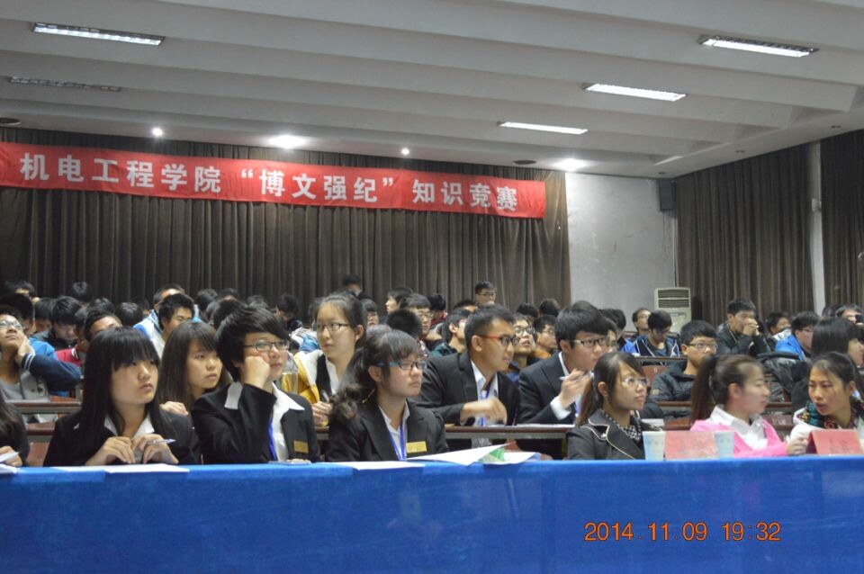 2014年11月9日晚上7点,WilliamHill官方网站在2号阶梯教室举行了“博文强纪”知识竞赛。出席活动的有学工办主任张丽玲老师、分团委书记郑建华老师,学生会主席团以及2014级学生。本次知识竞赛的范围是百科知识和学生手册,旨在扩大同学们的视野,提升大学文化素质,加强同学们对校规校纪的认识,促进学风建设,营造浓郁校园学习氛围。竞赛的主要环节有:必答题;判断题;移花接木题;抢答题;风险题。每个专业派出三个代表参加,分为个人赛和团体赛。为了调动现场气氛,其中穿插观众互动环节。经过激烈的角逐,14级电气工程及其自动化专业代表队获得冠军,14级机械设计制造及其自动化代表队获得亚军。此次竞赛不仅丰富了同学们的知识积累,同时也锻炼了同学们的团队协作能力。