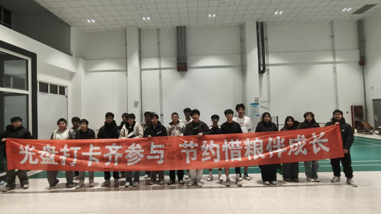 活动前期,学院精心绘制主题宣传板,清晰呈现节粮节水政策要求;活动现场,3张宣传桌整齐排列,志愿者向师生解读《节约粮食行动方案》《节约用水条例》核心内容,普及粮食安全与水资源保护知识;在“光盘打卡齐参与、节约惜粮伴成长”条幅前,师生纷纷签字承诺,现场氛围热烈有序。此次活动紧扣世界粮食日、全国粮食安全宣传周等重要节点,通过主题展板、签名承诺等形式强化师生节约意识,为后续深化节粮宣传教育、推进食堂“光盘打卡”奠定基础。