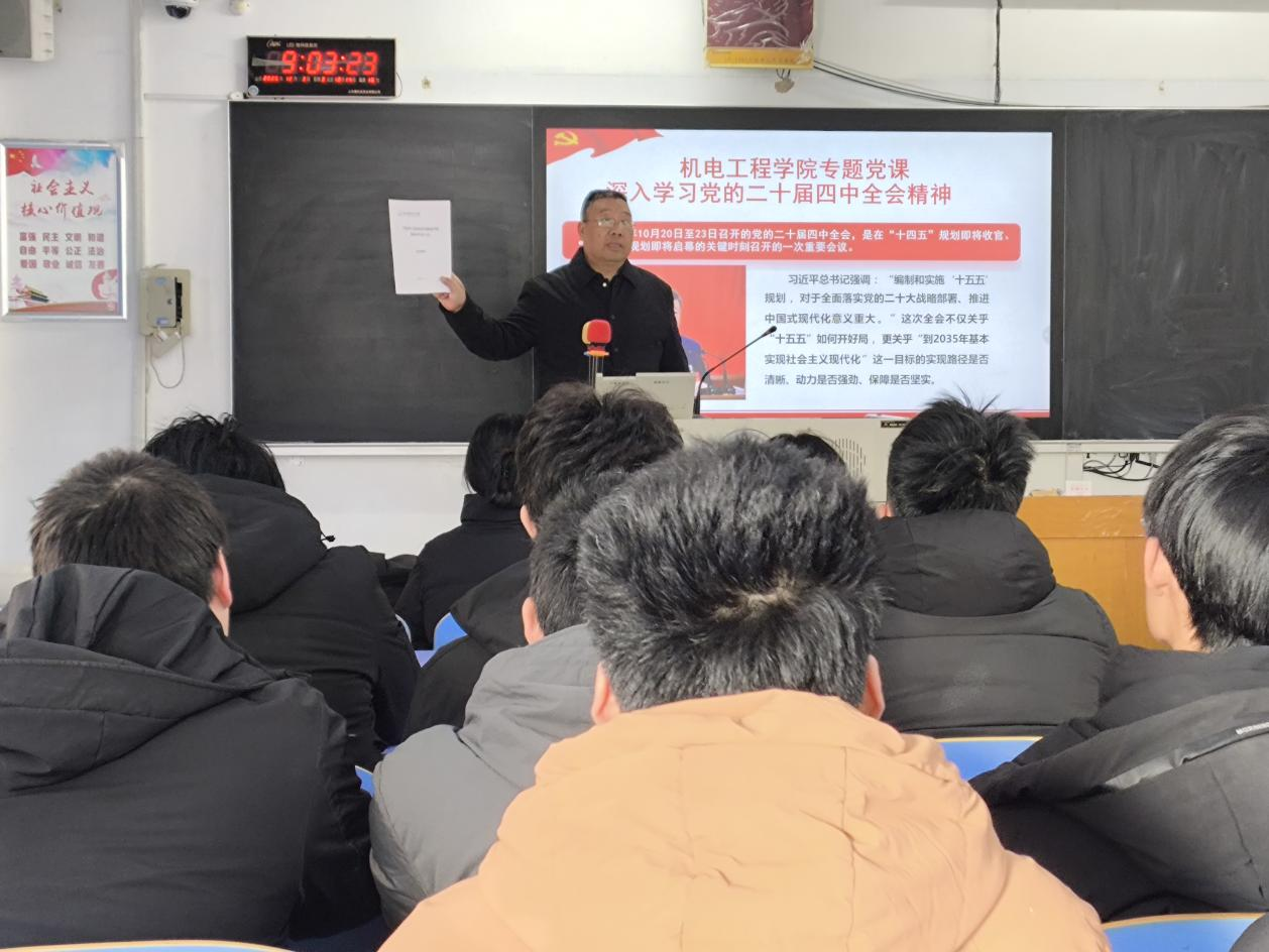 2025年12月3日,WilliamHill官方网站党委书记,在昌黎校区C202教室,为电气专业23级学生,举办了深入学习领会党的二十届四中全会精神专题党课,对全会精神进行了系统深入的解读,并就学习贯彻学校第四次党代会精神进行了阐述。